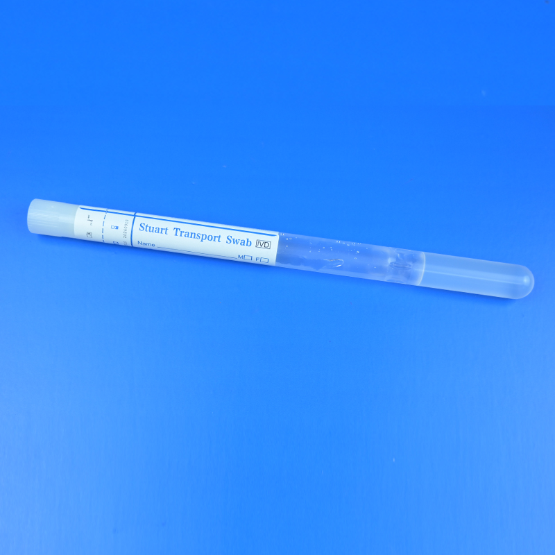Stuart gel medium Bacteria Transport Swab has been used for aerobic culture. The unique tube shapepreserves gel media, and uniquetube design prevents disintegration or breakdown of gel column duringspecimen transport and eliminates harmful air bubbles. No glass ampoules to break, no seal or barriers topuncture or dry out swabs. 5ML gel column affords maximum protection and improves sample viability
